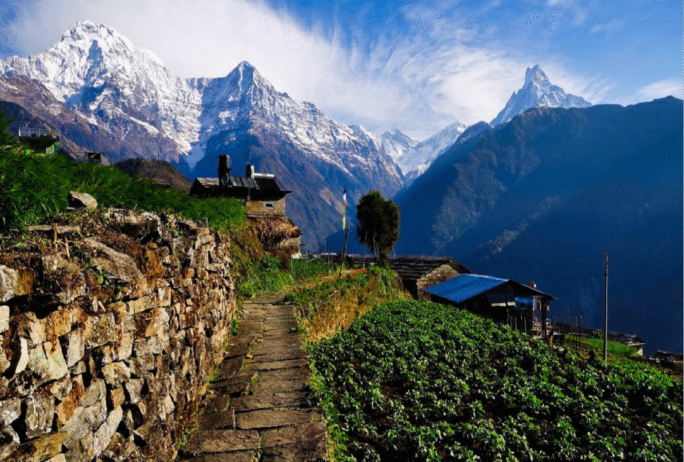Trekking lodges (Tea House) throughout the trek.